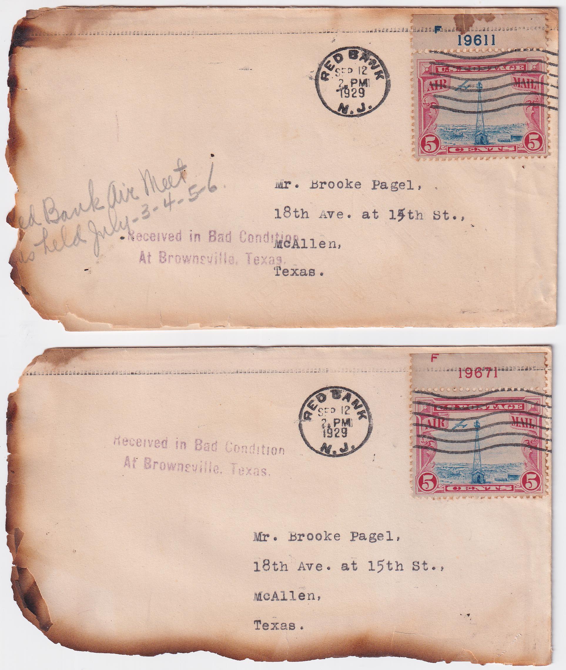 US 1929 (Sep 12) Atlanta Plane Crash Covers with C11 plate number singles and Post Office Letter....