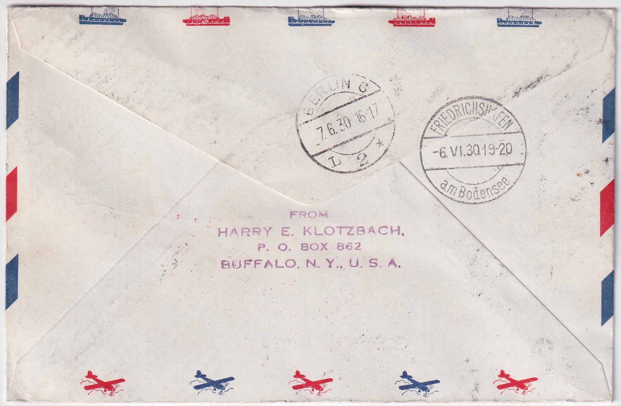 US 1930 Zeppelin Round the World Flight with C13 pair and C15, Klotzbach Cachet
