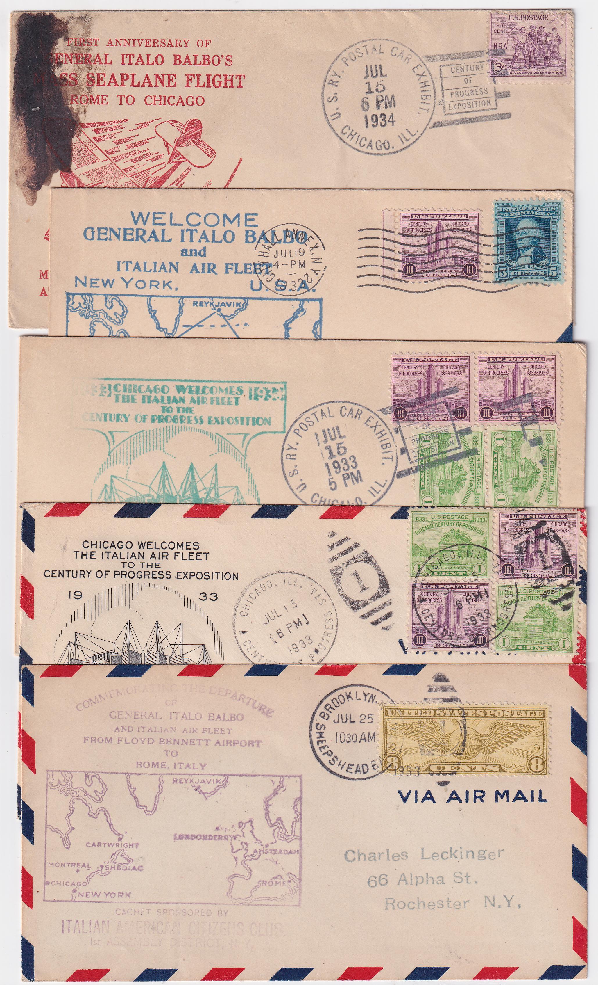 US 1933-1934 5 Airmail Covers Commemorating Italo Balbo Italian Air Fleet + Photos