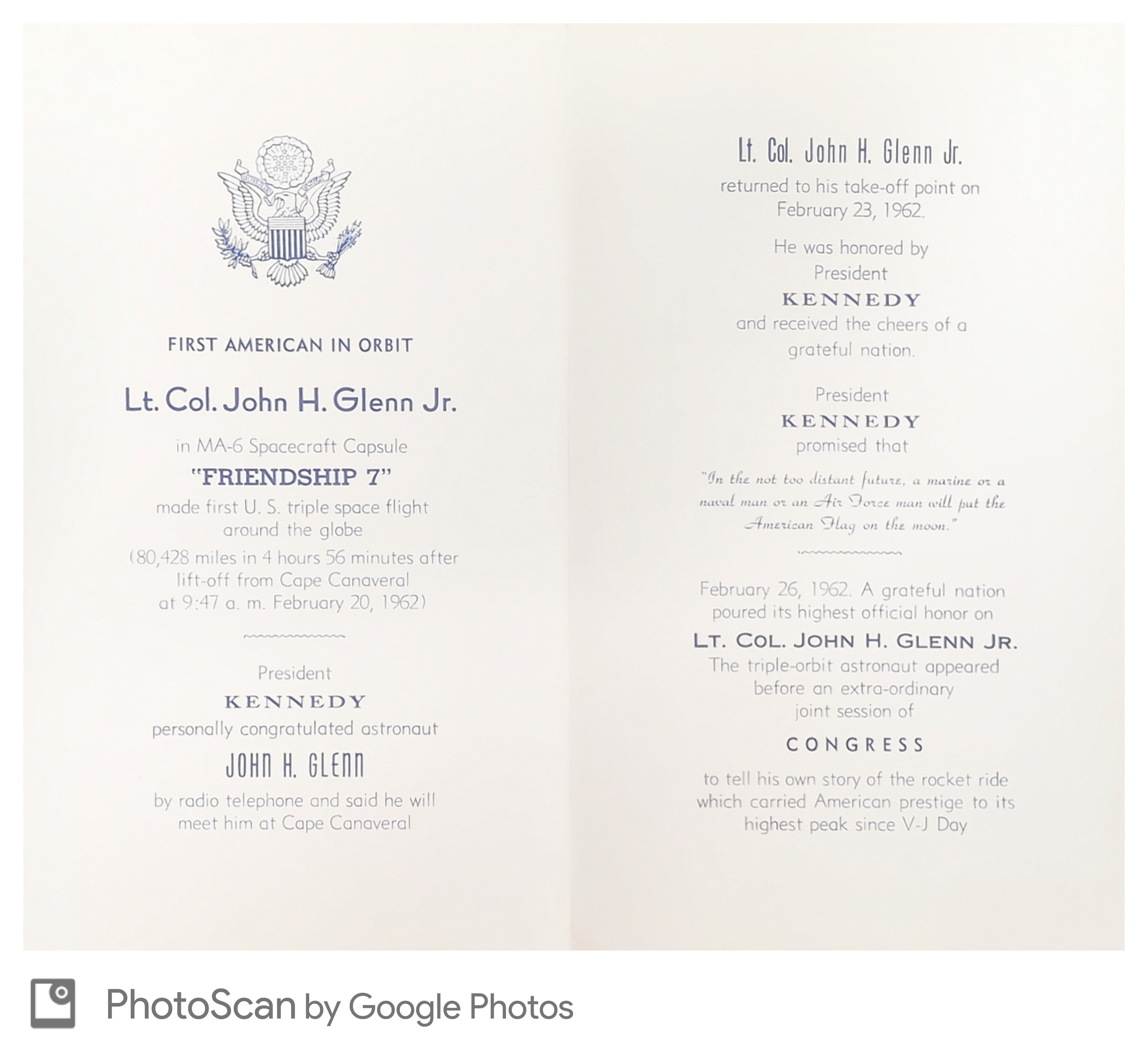 US 1962 Commemorative LeafletSigned by John Glenn