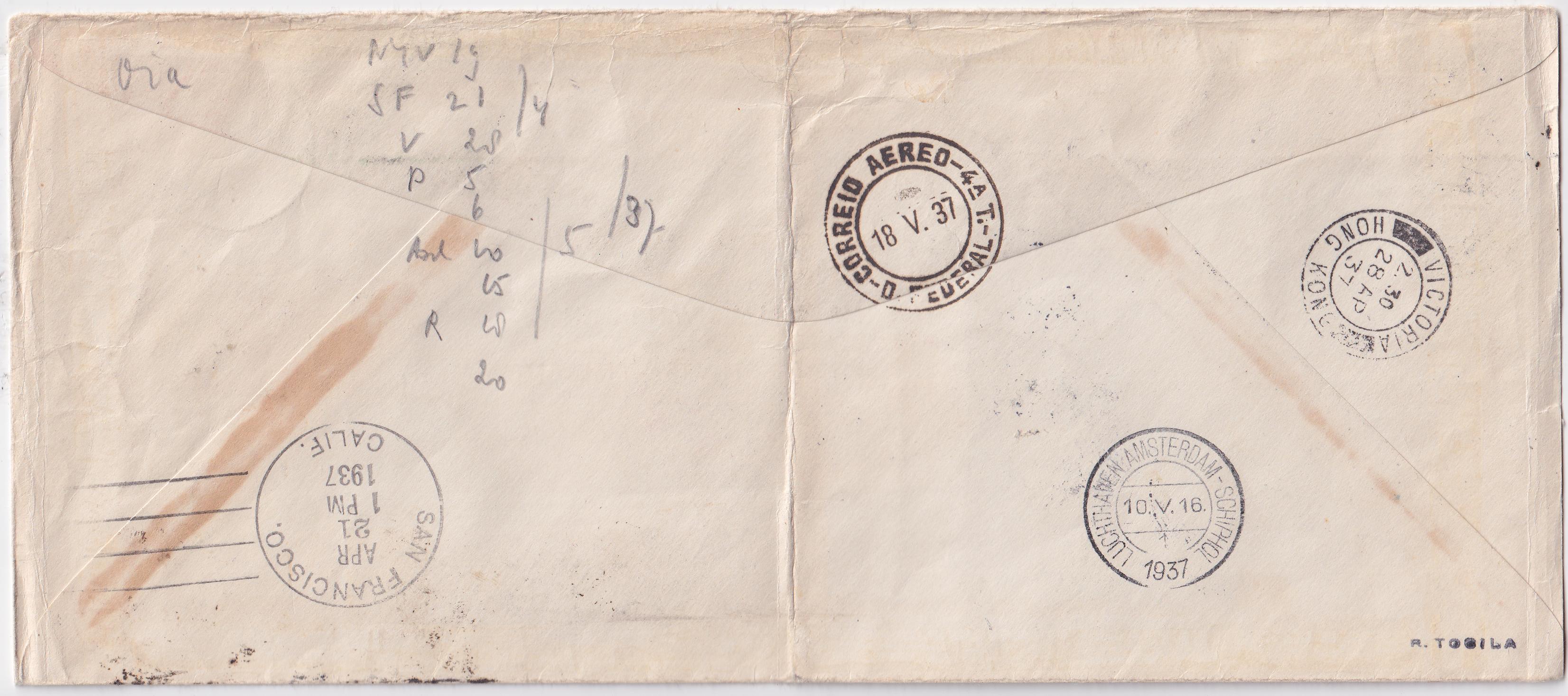 US / Brazil / Netherlands / Malaya 1937 (Apr 19) Pan Am / KLM Around the World...