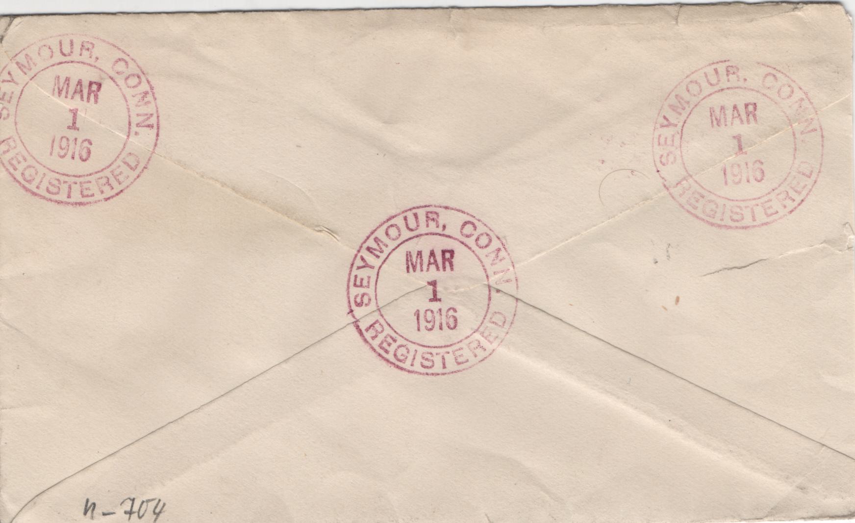 US Seymour, CT 1916 (Mar 1) Registered cover with 433 on postal stationery with two strikes of...