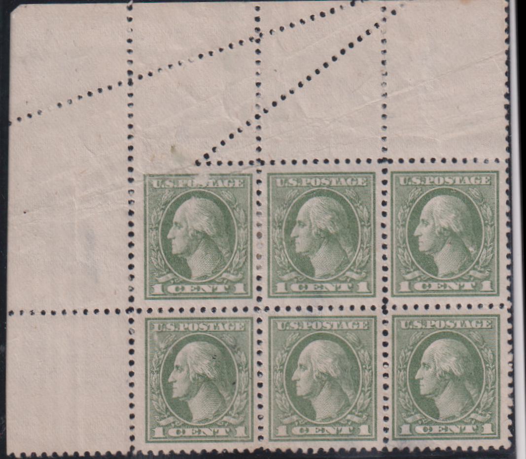 US Washington - Franklin #527 Hinged Mint F UL block of 6 "crazy Perfs" due to paper...